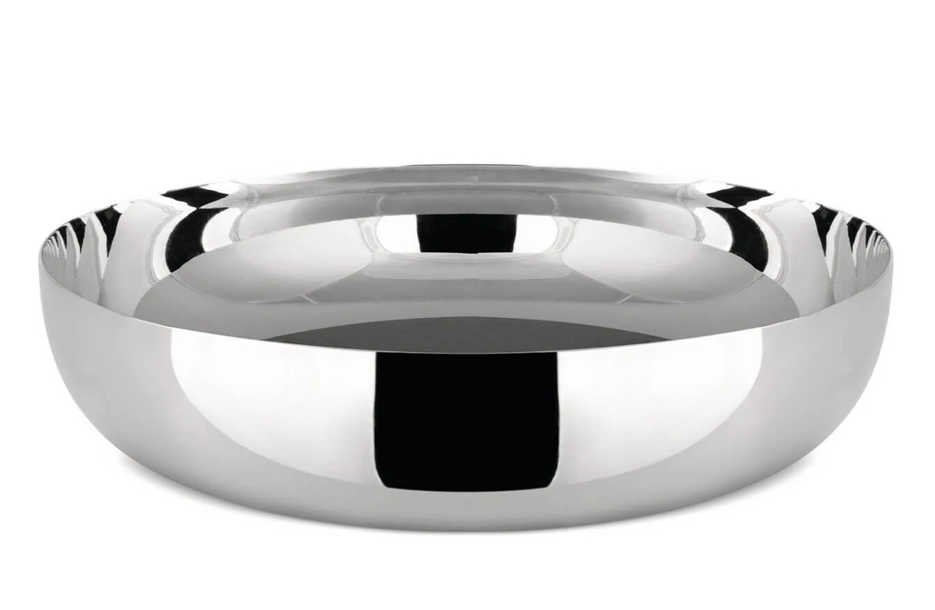 De Alessi schaal is vervaardigd van hoogwaardig roestvrij staal en ontworpen door Jasper Morrison. De schaal is minimalistisch vormgegeven.