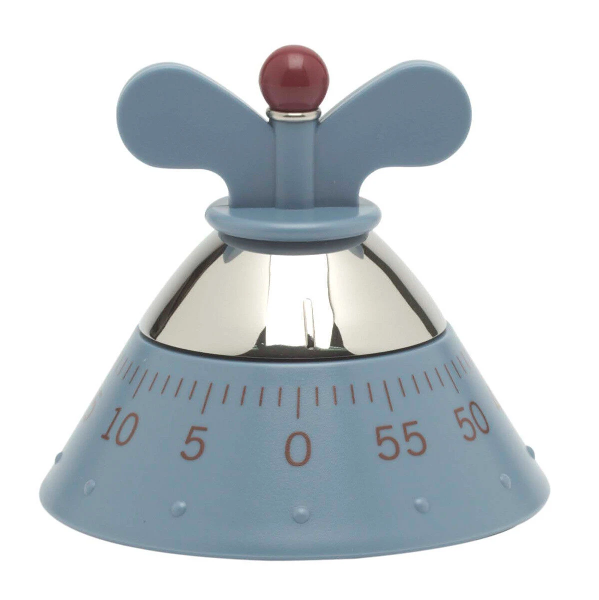 De Alessi blauwe keukenwekker heeft een diameter van 10,5 cm en is 9 cm hoog. De door Michael Graves ontworpen wekker is gemaakt van kunststof en verchroomd staal. De timer heeft een bereik van 60 minuten. Zodra de ingestelde tijd verstreken is klinkt er een belsignaal. Gebruik de Alessi Michael Graves keukenwekker om de kooktijd van uw maaltijd bij te houden.