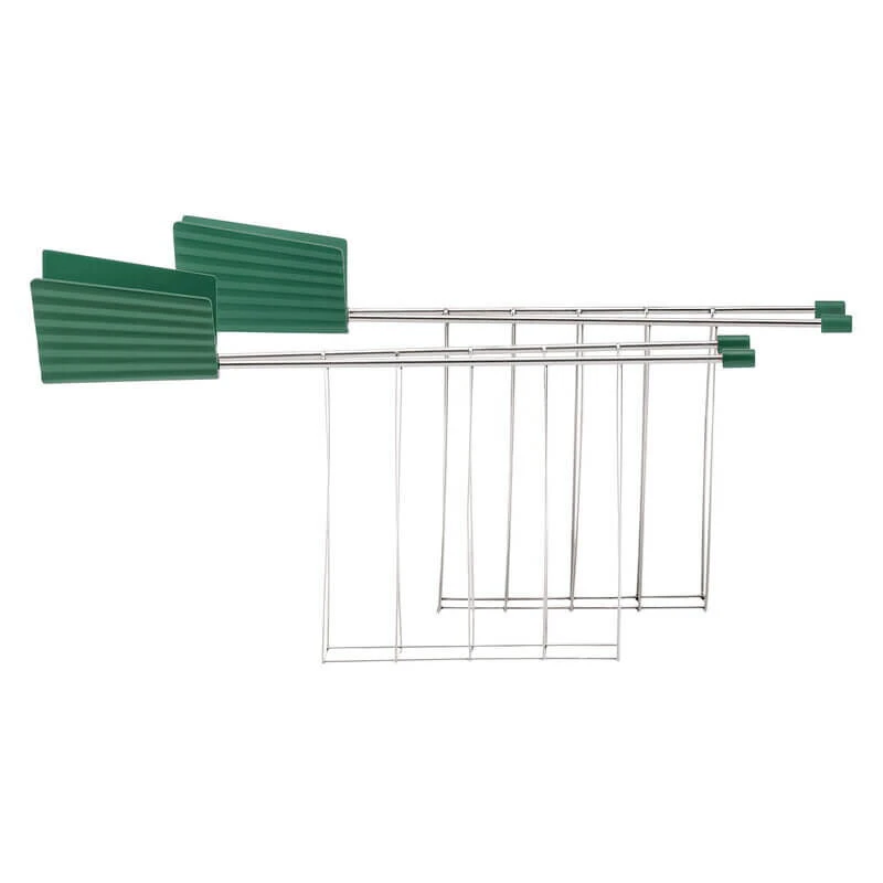 De Alessi Plissé tostiklem is gemaakt van roestvrij staal met een groene, kunststof greep. De tostiklem heeft een lengte van 31,5 cm, een breedte van 19 cm en is 4 cm diep. Gebruik de tostiklem in combinatie met de Alessi Plissé broodrooster voor het maken van tosti’s. Wordt geleverd in een set van 2 stuks.