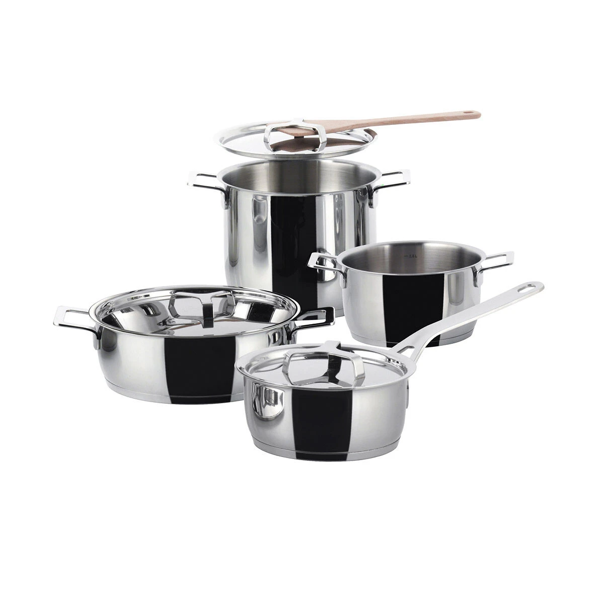 De Alessi Pots & Pans pannenset bestaat uit de volgende onderdelen: