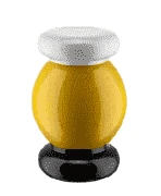 De Alessi ES18 zoutstrooier is gemaakt van beukenhout dat geel, zwart en wit gelakt is. De strooier is 11 cm hoog en heeft een diameter van 7 cm. De fraaie strooier, naar ontwerp van Ettore Sottsass, kan worden gebruikt voor het strooien van zout, peper of andere kruiden, en is een fraaie accessoire in de keuken of op tafel.